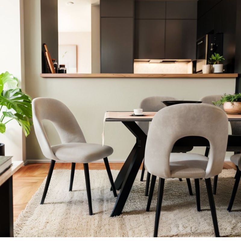 Καρέκλα μεταλλική μαύρη βελουτέ γκρι